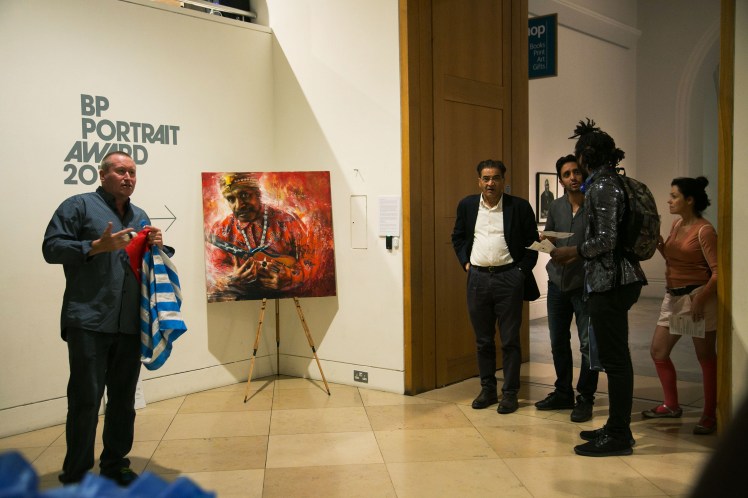 - Street artist joins performance activists to display portrait and give public talks in the BP Portrait Award gallery, without permission