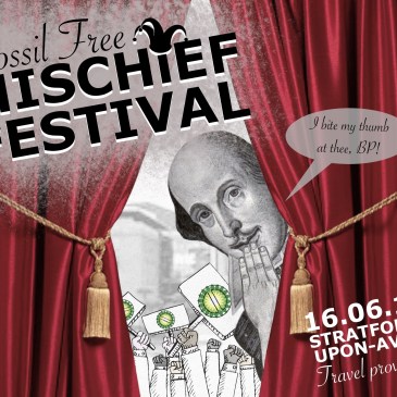 FOSSIL FREE MISCHIEF FESTIVAL, SATURDAY JUNE 16TH 2018 Grab your hat, don your wig, bring your wickedest smile And come challenge BP in theatrical style Join us in June to exhibit your ire At that loathsome, rank, endless and infinite liar…BP! On Saturday June 16th, activist theatre group BP or not BP? invite you to … More Join us for some serious Mischief against BP on Saturday June 16th!