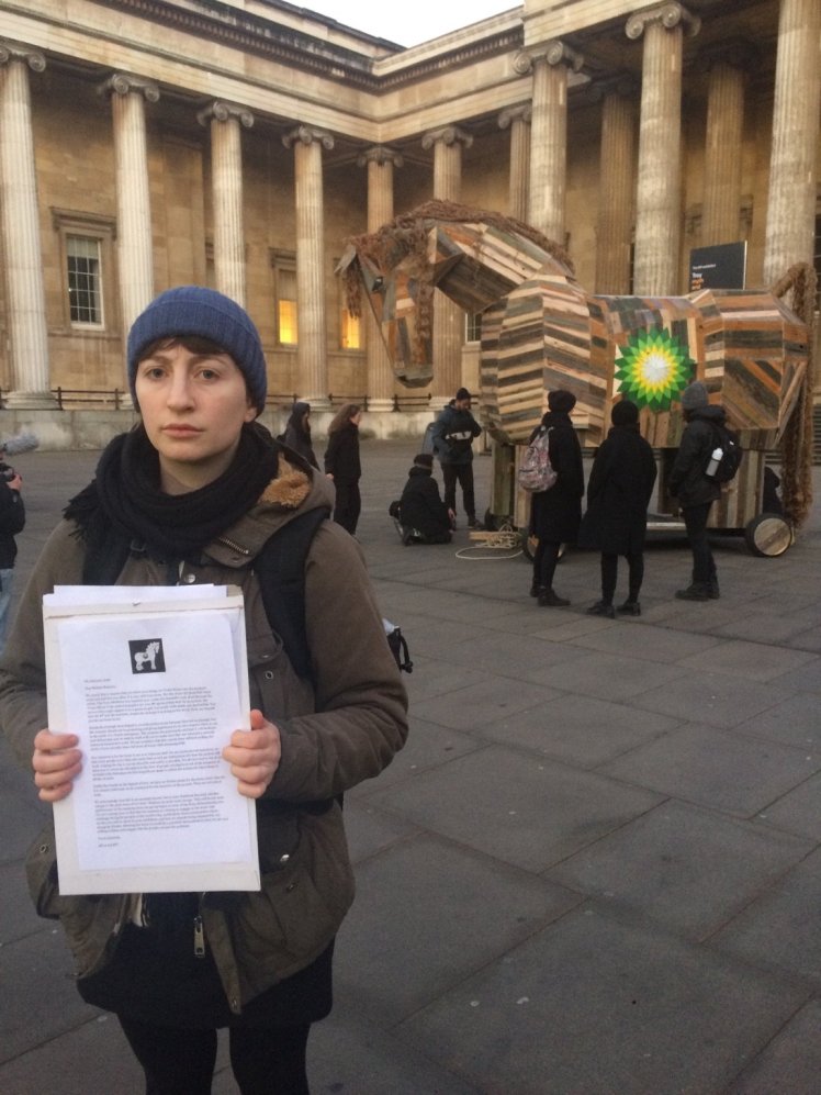 We would like to request that you allow us to bring our Trojan Horse into the museum courtyard and that you allow it to stay until tomorrow, the day of our ‘BP Must Fall’ mass action. The Troy exhibition has inspired us to create this beautiful work of art because the Trojan Horse is the perfect metaphor for your BP sponsorship deal. On its surface, the sponsorship might appear to be a generous gift, but inside lurks death and destruction. You have let BP into the museum, despite the damage it is doing to the world. Now, we request you let our horse in too.