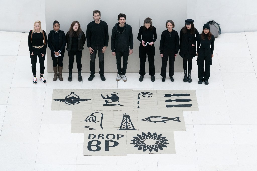 Opening chants included the message: “The exhibition claims to celebrate Egyptian culture, but it is funded by people who destroy that culture.” Then two professional singers, accompanied by BP or Not BP? activists, sang a protest song about “a sponsorship signed with blue blood ink, to sell the future for a stolen past, as the present is running out very fast.”